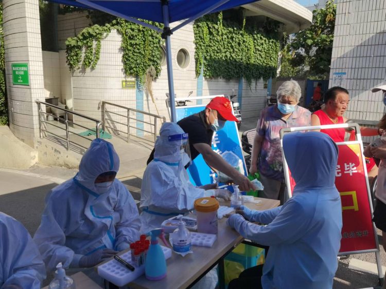 “請(qǐng)各位居民間隔一米五的距離,提前出示安康碼,綠碼可在此檢測(cè)點(diǎn)進(jìn)行檢測(cè),黃碼人員一律前往市人民醫(yī)院進(jìn)行檢測(cè),測(cè)體溫、準(zhǔn)備好自己的‘安康碼’或身份證……”6月28日,市建投交投公司機(jī)關(guān)黨支部黨員來(lái)到西街道鷹山社區(qū)的全員核酸檢測(cè)采樣點(diǎn)協(xié)助工作。