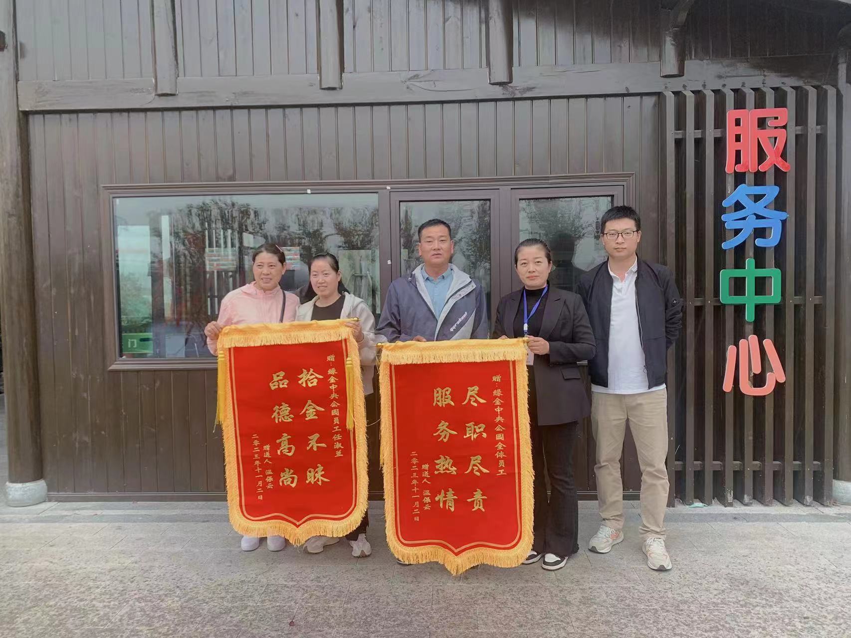 2023年10月30日,游客在綠金湖游藝園游玩時錢包不慎丟失,錢包里有身份證件、現(xiàn)金千元、金項(xiàng)鏈、金戒指以及鉆戒,共計(jì)價(jià)值近6萬元,失主前往到游藝園服務(wù)中心尋求幫助,在游藝園工作人員的幫忙尋找下,任淑蘭找到游客丟失的錢包,歸還給了失主。11月3日,綠金湖游藝園服務(wù)中心收到了失主送來的錦旗,再次感謝工作人員的幫助,避免了損失。