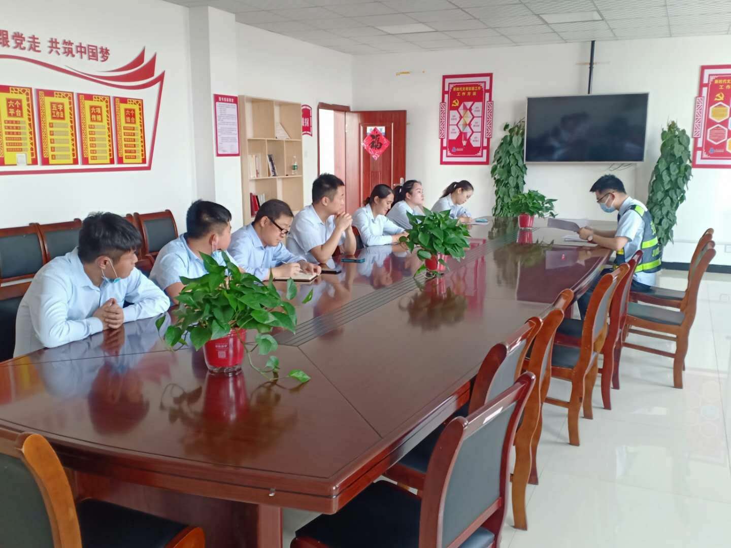 5月27日,融通公司黨支部將“黨建一點(diǎn)課”與收費(fèi)站班務(wù)會(huì)相結(jié)合,組織收費(fèi)站各部室人員學(xué)習(xí)《S202淮北收費(fèi)站安全管理制度》、《S202淮北收費(fèi)站票款日清制度》、《淮北市融通實(shí)業(yè)有限公司物資采購(gòu)管理辦法》,同時(shí)進(jìn)行黨建工作相關(guān)知識(shí)的宣傳,并與大家共同分享融通黨支部疫情防控期間先進(jìn)事跡,通過(guò)本次會(huì)議,增強(qiáng)了公司職工的集體榮譽(yù)感,也為開展融通黨支部黨建融合提升工作邁出了第一步。