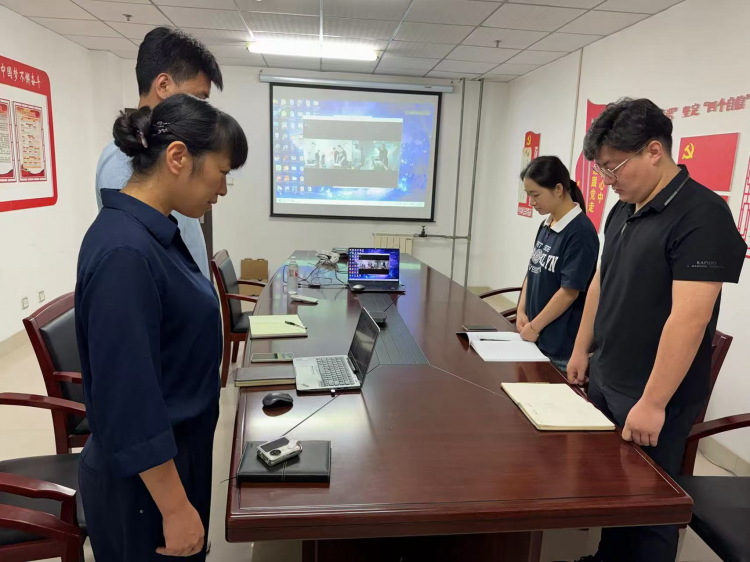 上午9點18分,隨著防空警報聲響起,全體黨員干部肅立默哀,共同緬懷在“九一八”事變中英勇無畏、拋頭顱灑熱血的革命先烈。那聲聲警報,仿佛在訴說著那段沉重的歷史,提醒著每一位黨員勿忘國恥,牢記使命。
