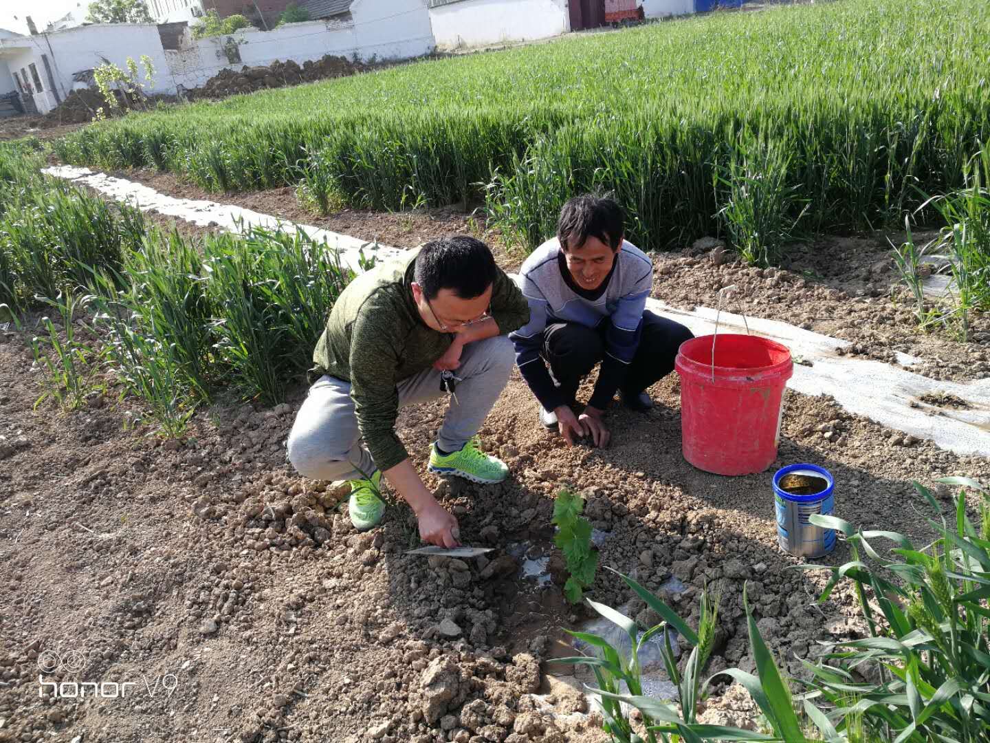 眼下春光正好,正是為果樹苗追肥除草的好時(shí)節(jié)。4月26日,城泊公司幫扶小組趕赴火神廟村扶貧戶家中,為已經(jīng)種下的100株扶貧葡萄樹苗進(jìn)行了施肥除草。