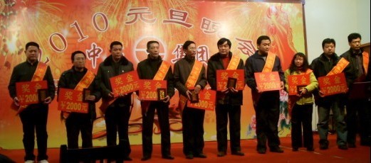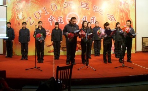 本次年會共分為三部分。第一部分是2009年總結(jié)會,于上午成功召開;第二部分是2009年優(yōu)秀員工頒獎大會,于下午三點隆重舉行,來自集團及分公司的十二位優(yōu)秀員工受到表彰;第三部分是2010年元旦晚會,于下午四點開始,在一派喜氣洋洋中,應(yīng)邀嘉賓、集團及各分公司領(lǐng)導、集團及各分公司員工、員工家屬等共計200余人一起度過了美好而難忘的快樂時光。
